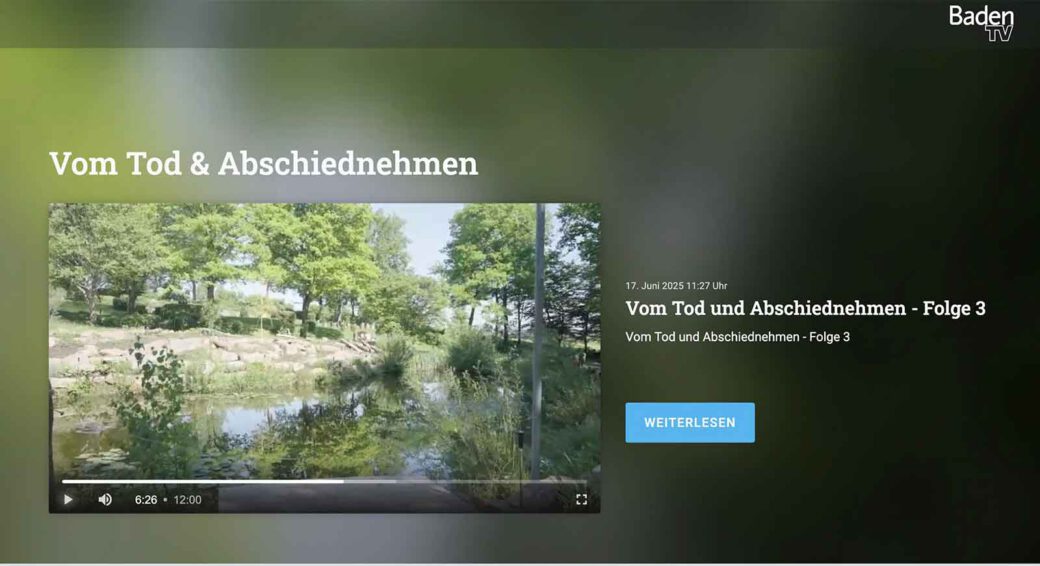 In der dritten Folge der Baden-TV-Reihe geht es um neue Wege des Erinnerns und Abschiednehmens. Der Beitrag zeigt, wie sich Trauerkultur verändert – persönlicher, offener und näher am Menschen. Ein Thema, das auch unsere tägliche Arbeit begleitet.